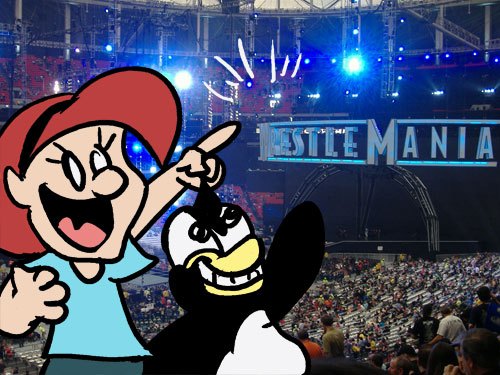 Back at home and in action! Wrestlemania was awesome. Atlanta also was awesome. Since Wrestlemania was not until Sunday night, we went to the Atlanta zoo and the Center for Puppetry Arts. Both were AWESOME. However, there were NO PENGUINS at the zoo. Fizzlebit was offended.
