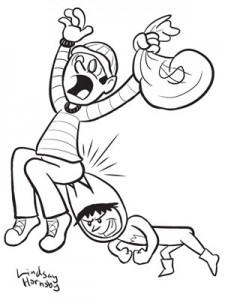 One of the background characters I put in the cover stood out to writer Steve Johnson and became a sample good-guy character, known as The Human Spork, who also appears in an interior illustration I did for the game. (The gender of The Human Spork remains a mystery, however.) Other really sweet interior art appears from frequent Hex artists Leighton Conner, Jeffery Johnson, and Joshua Burnett.  You can pick up a digital copy of All Stars at Hex Games’ website and play to your heart’s content.