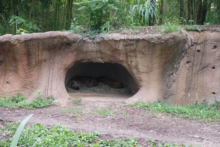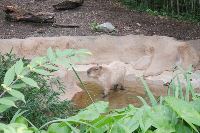 River’s Edge is a unique area in the way that it’s laid out – there’s a lot of walking through very winding pathways that are nestled in lots of trees and tall rocks, blocking out other buildings and making you feel like you’ve teleported into various continents to see the animals hanging out. Animals that get along with each other are mixed together like the red river hog and bat-eared fox. There’s a new Painted Dog habitat, but so far they’ve been hiding or snoozing when I’ve visited.