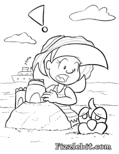 First up is the obligatory Trip-To-The-Beach themed coloring page with Lydia and Fizzlebit!