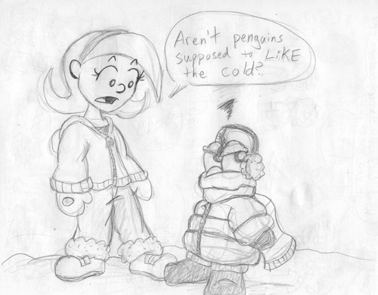 - Penguins make fine mini Christmas trees.