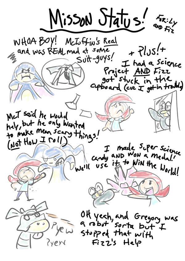 Looks like Lydia broke out some colored pencils for this edition of the Mission Status…