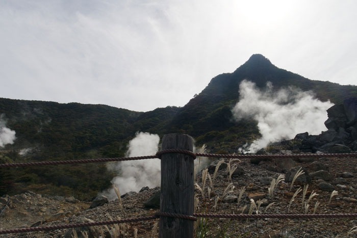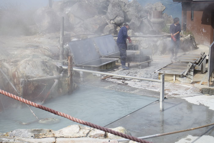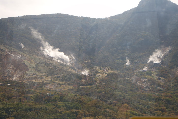 We took a ropeway car up to see Owakudani, an area with hot springs and sulfurous fumes due to being around an active volcano zone. It’s a popular area for people to visit to walk around and see steaming craters and great views of Mount Fuji.